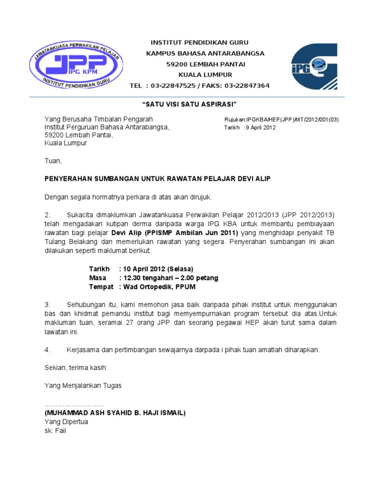 Contoh Surat Mohon Kutipan Sumbangan Dari Ahli Pibg