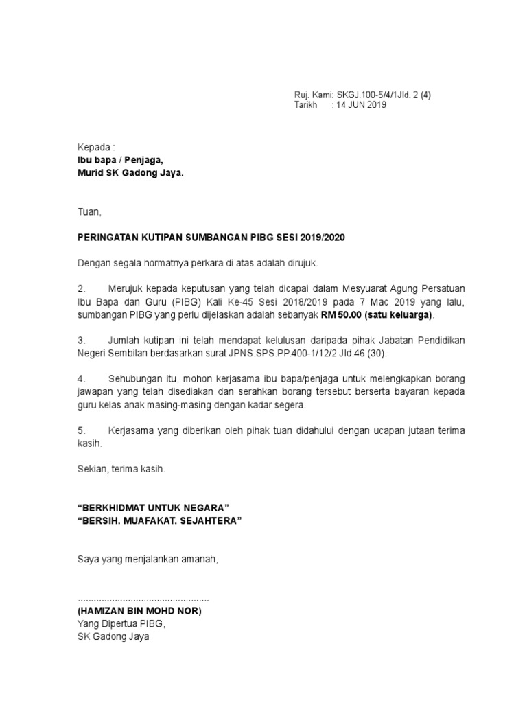 Surat 2019 Kutipan Sumbangan Pibg Pdf
